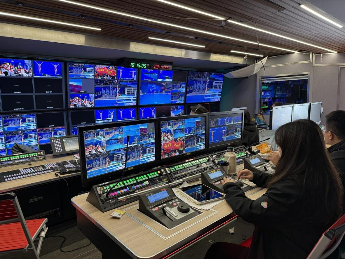 在十五運會國際廣播中心,大屏上實時跳轉(zhuǎn)著來自粵港澳三地的賽事畫面,云平臺如同一個“智慧大腦”,快速處理著每一路信號。