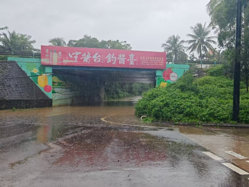 東紅高速涵洞積水,車輛須減速緩行(圖片來源:瓊海市警方)