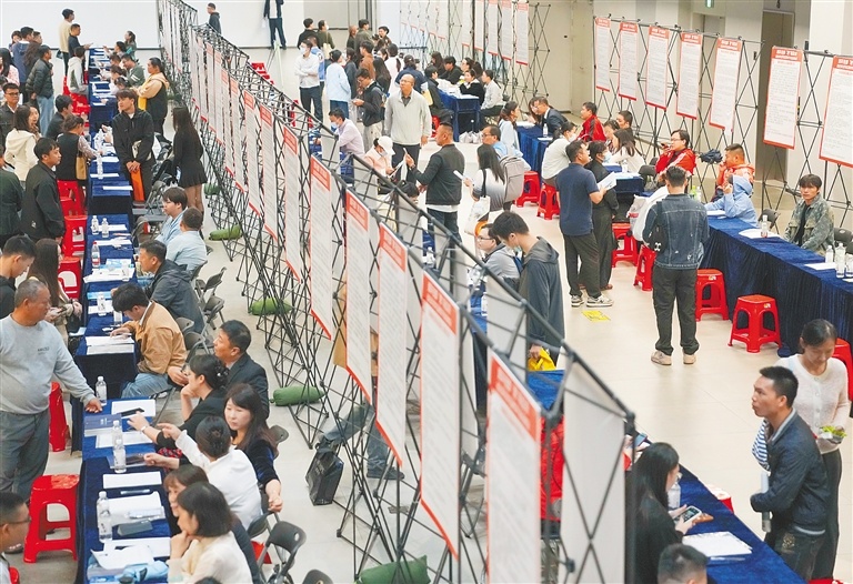 現(xiàn)場設(shè)招聘、直播帶崗、職業(yè)指導(dǎo)等專區(qū),共吸引568名求職者入場,投遞簡歷369份,助力實現(xiàn)精準(zhǔn)就業(yè)與高效引才。(記者 李天平 攝)