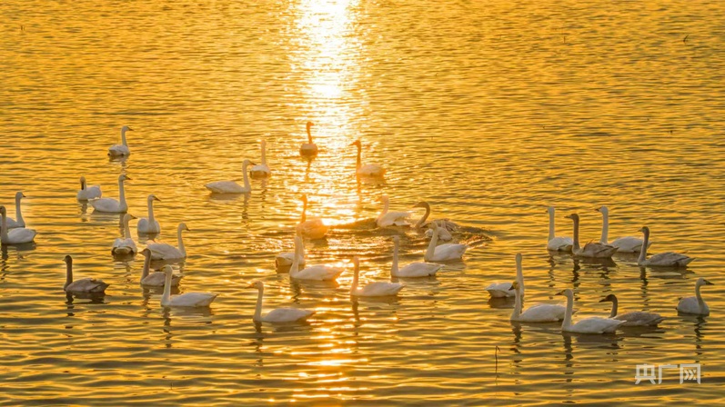 在江西鄱陽湖都昌縣馬影湖水域,千余只小天鵝攜幼鳥在湖中覓食,它們時而追逐嬉戲、時而整理羽毛、時而翩翩起舞,構(gòu)成了一幅優(yōu)美動人的生態(tài)畫卷。