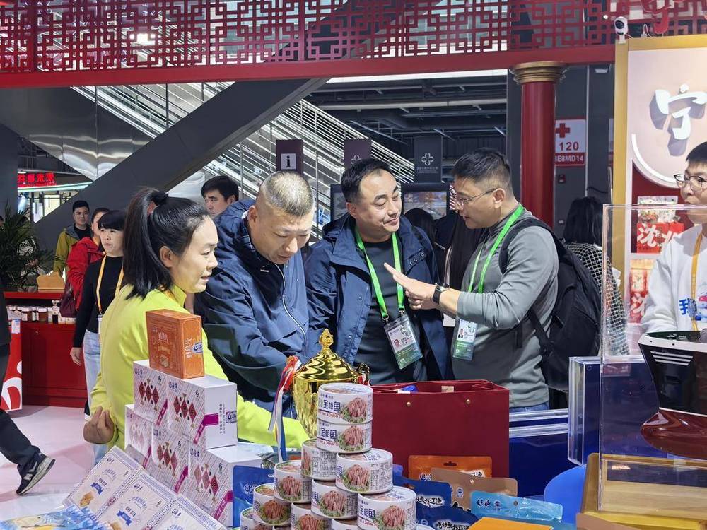 淺棕、墨綠色調(diào)下,抽象線條勾勒出山脈輪廓,搭配木質(zhì)展架,好似山林之景;地面鋪著海浪紋理地墊,頂部懸掛著藍(lán)色紗幔,仿佛碧海波濤……走進(jìn)本屆進(jìn)博會(huì),遼寧展區(qū)形象布展緊貼“山海遼寧”,以“樂(lè)購(gòu)遼寧,惠享美好”為主題,集結(jié)了大連海鮮、盤(pán)錦大米、葫蘆島泳裝等200余種“遼寧好物”,集中展示“遼寧制造”的深厚底蘊(yùn)和現(xiàn)代商業(yè)的創(chuàng)新活力。大連展區(qū)以“遇見(jiàn)大連 心動(dòng)無(wú)限”為主題,劃分“地方名產(chǎn)”“文化傳承”“新品潮品”“人文原創(chuàng)”四大展示單元,攜特色展品與創(chuàng)新成果集中參展,全方位展現(xiàn)大連的人文底蘊(yùn)與城市發(fā)展活力。