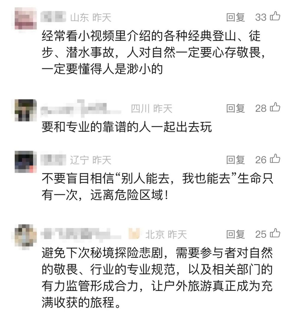 即便如此,依然有部分驢友心存僥幸、甚至不顧危險,私自進入未開發(fā)區(qū)域。還有些未經(jīng)過正規(guī)注冊的私人組織,通過小眾渠道招攬愛好者。種種冒險,是對自然規(guī)律的踐踏,也是對自身生命安全的忽視。