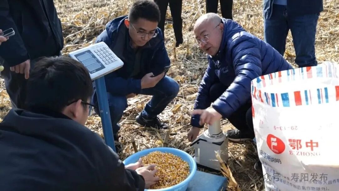 晉中市壽陽縣景尚鄉(xiāng)玉米高產(chǎn)示范田內(nèi)進(jìn)行測產(chǎn)(壽陽融媒供圖)