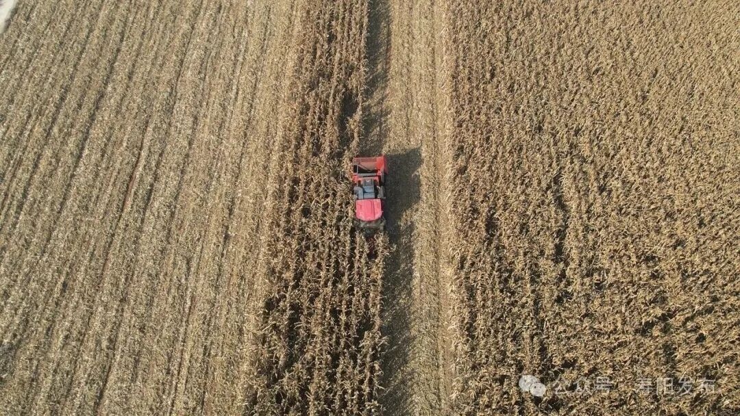 玉米田內(nèi)正在機(jī)械作業(yè)(壽陽融媒供圖)