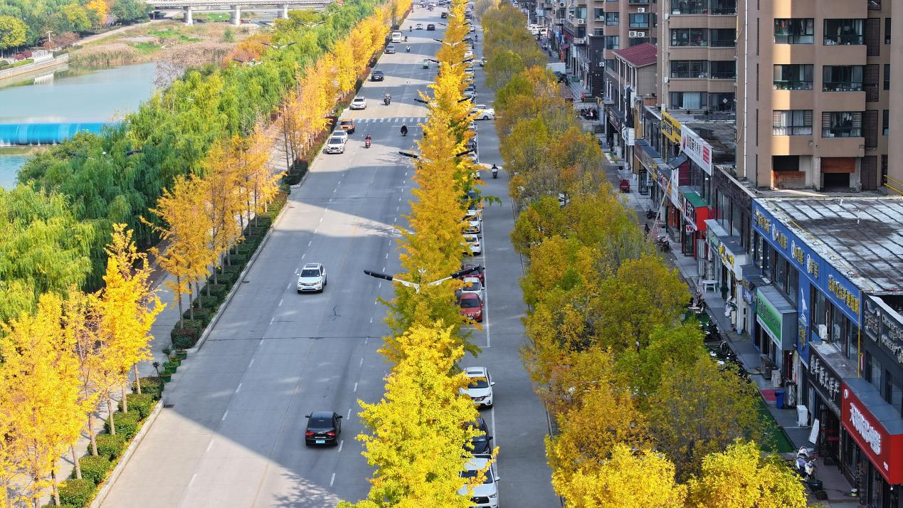 濱河?xùn)|道兩側(cè),滿樹(shù)的銀杏葉逐漸由綠轉(zhuǎn)黃(垣曲融媒供圖)