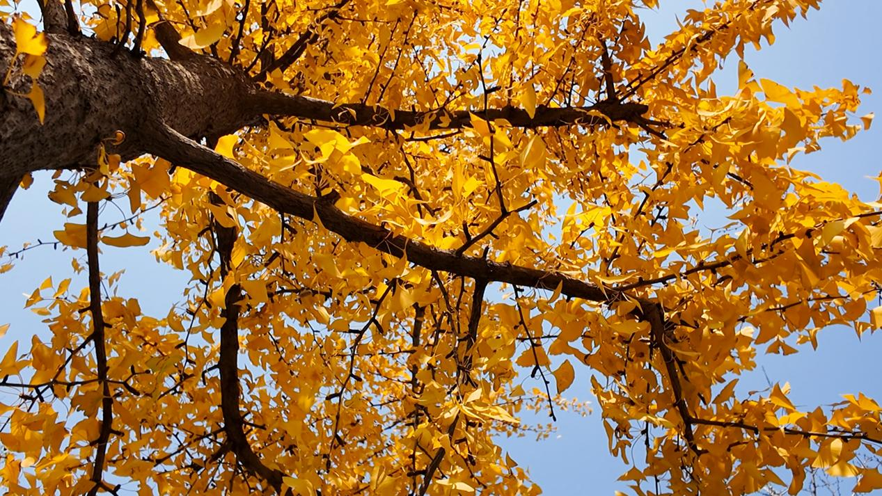 滿樹(shù)的銀杏葉宛如一串串金色的風(fēng)鈴懸掛枝頭(垣曲融媒供圖)