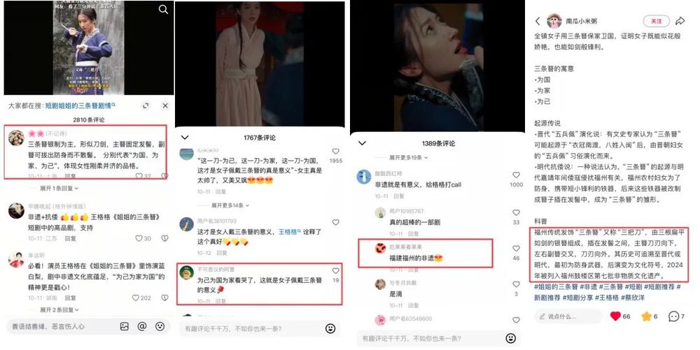 在抖音以及小紅書等社交媒體,觀眾的自發(fā)推薦與深度討論形成傳播熱潮。“為己為國為家看哭了,這就是為什么女子佩戴三條簪”“家國大義、精彩劇情、人物群像,無法想象短劇已經(jīng)可以達到這樣的高度,這才是精品短劇的意義”評論區(qū)里的真摯反饋,印證了作品從“小眾表達”到“大眾共鳴”的跨越。主創(chuàng)團隊摒棄微短劇“爽感至上”的單一邏輯,用張力十足的劇情、立體鮮活的角色與豐滿的群像刻畫,證明了短劇也能承載深厚的情感與思想重量。