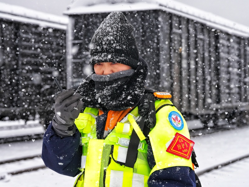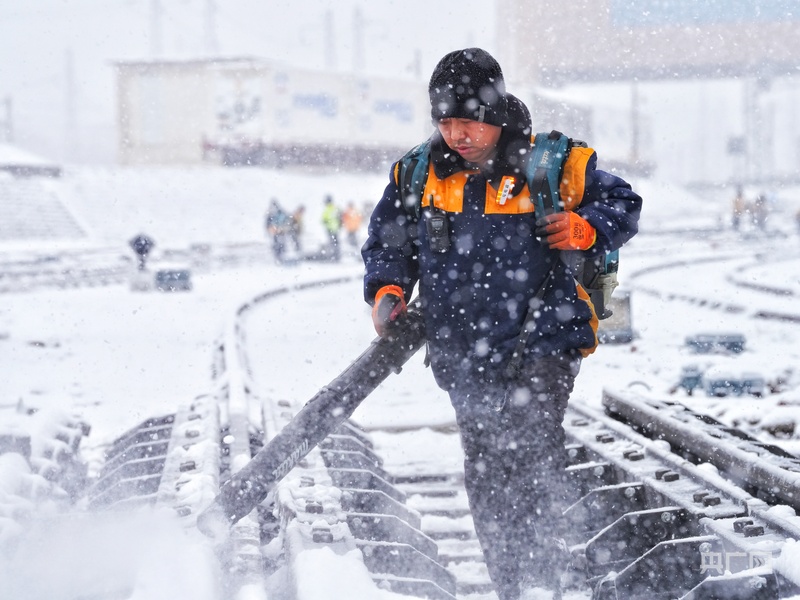 鐵路工作人員正在清雪 (央廣網(wǎng)發(fā) 擺風(fēng)亮 攝)