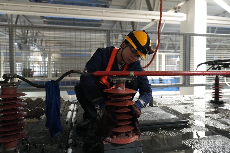烏魯木齊機(jī)務(wù)段加強(qiáng)機(jī)車整備,及時(shí)清雪除冰,保證列車運(yùn)行安全 (央廣網(wǎng)發(fā) 孫世豪 攝)