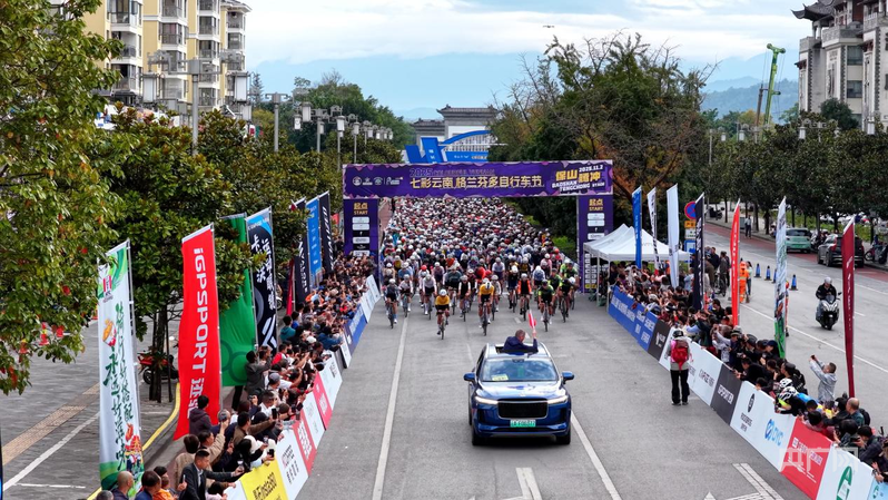 據(jù)統(tǒng)計(jì),本站賽事共吸引來自20多個(gè)國家和地區(qū)的1983名選手報(bào)名,其中長距離組1693人,短距離組290人。上午8時(shí)30分,在芒市站奪得長距離男女組冠軍并獲黃色領(lǐng)騎衫的王進(jìn)和李思,引領(lǐng)選手從文治光昌廣場出發(fā)。