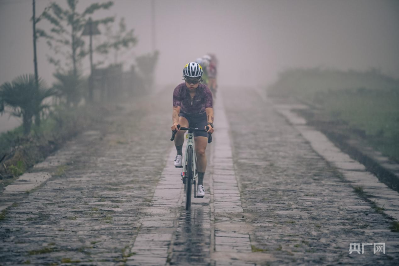 選手冒雨騎行在賽道上(央廣網(wǎng)發(fā) 賽事主辦方供圖)